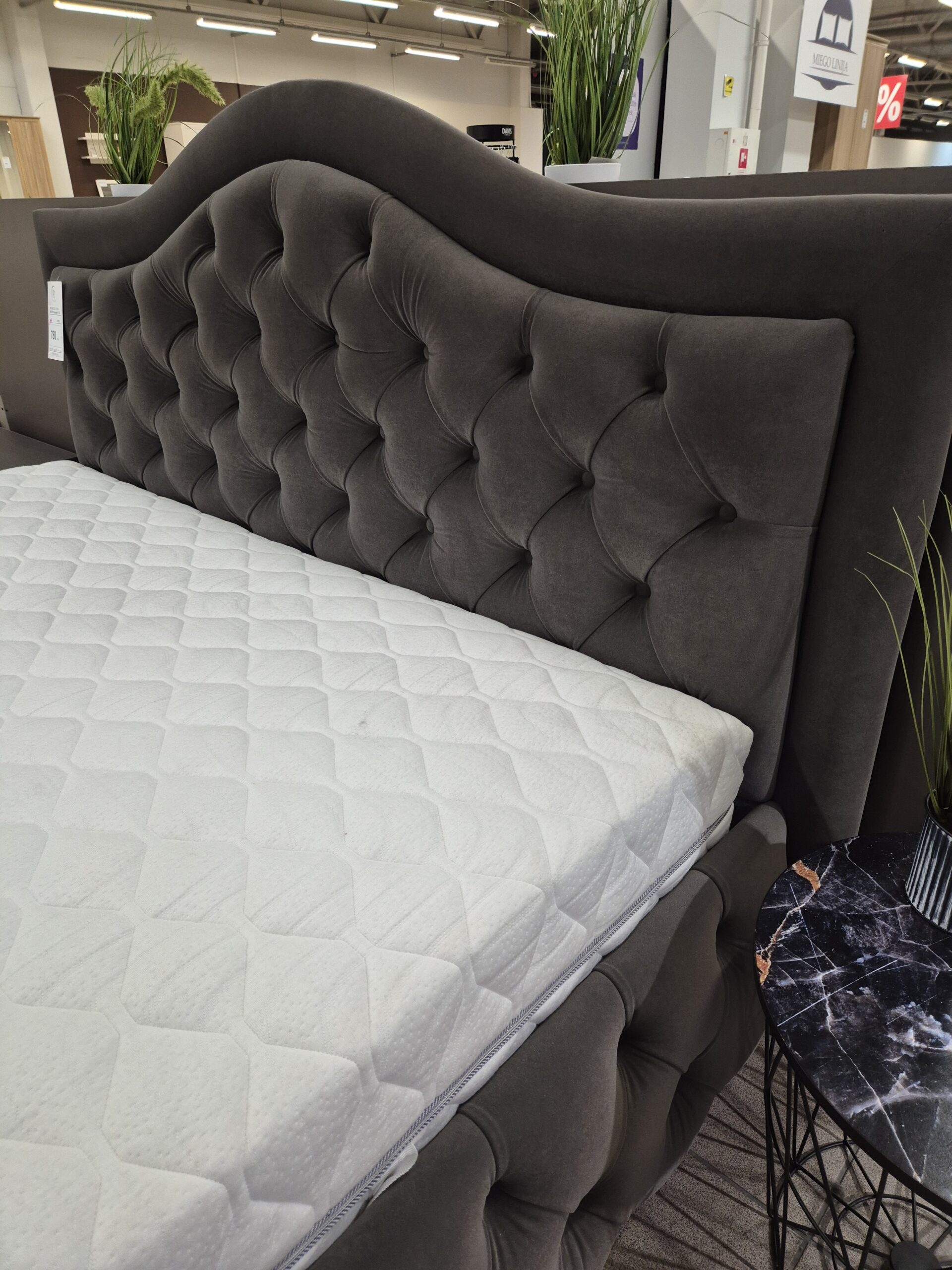 Tai modernaus dizaino, veliūru aptraukta dvigulė lova su patogiu pakeliamu grotelių mechanizmu ir erdvia patalynės dėže.