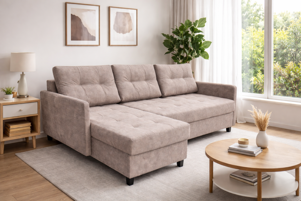 Kampinė sofa-lova skirta kasdieniam naudojimui. Sofoje naudojami Zig-Zag spiruoklės, didelio tankio putų poliuretanas, tvirtas klijuotos medienos karkasas.