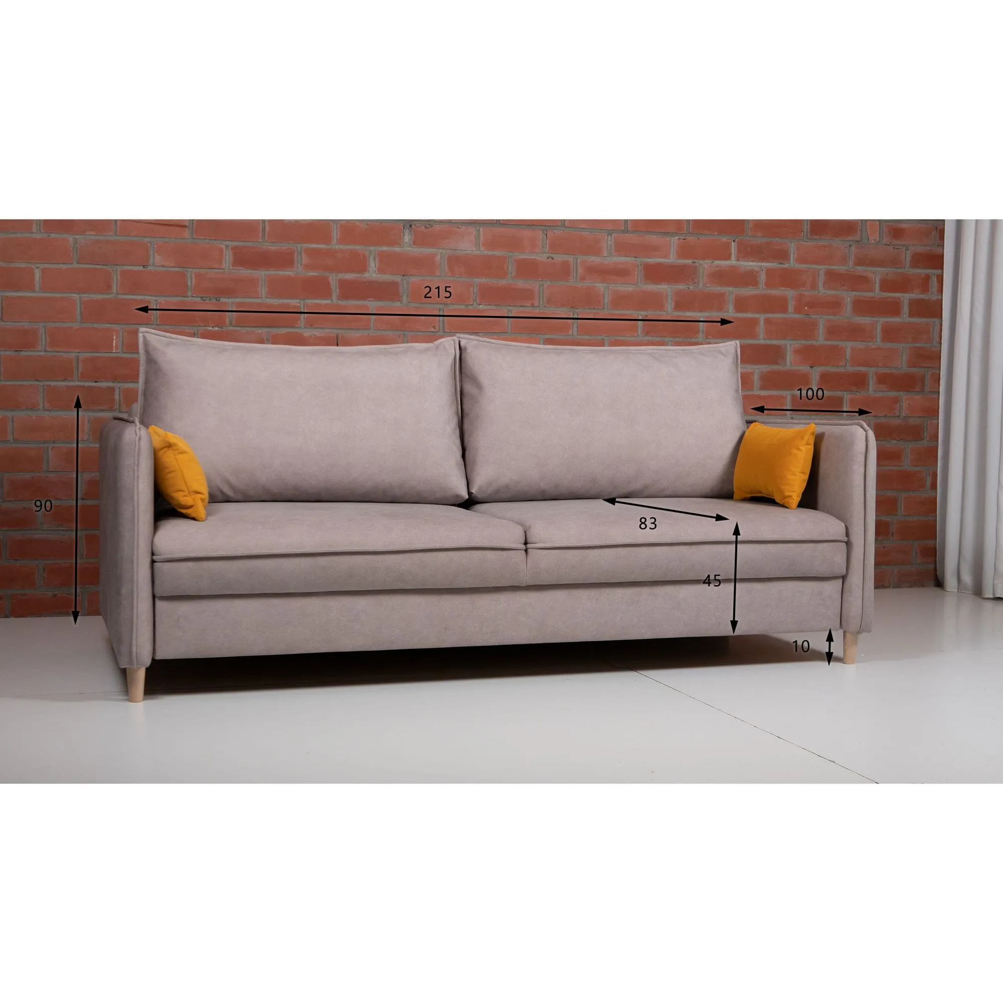 Ši elegantiška sofa puikiai tinka tiek svetainei, tiek svečių kambariui. Tvirta konstrukcija, patogios pagalvėlės ir minimalistinis dizainas suteikia interjerui jaukumo ir stilingumo.