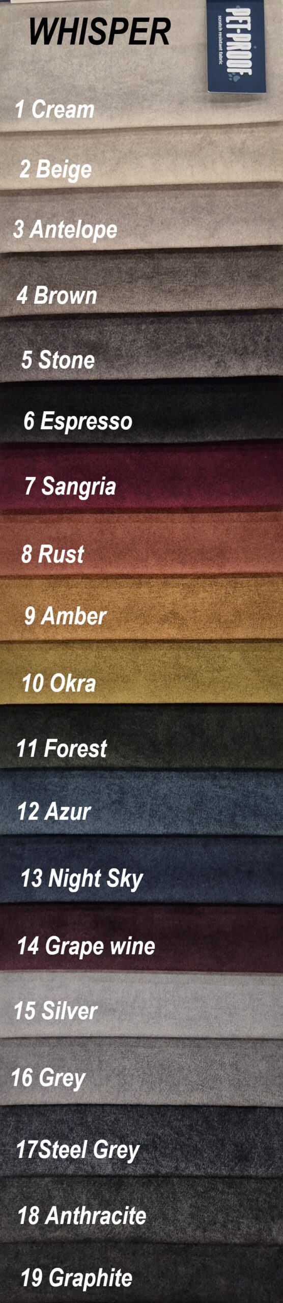 - Audinių spalvos pasirinkimas iš pateiktų paveikslėlių, žr. galerijoje. Platesnis audinių pasirinkimas prekybos vietose.