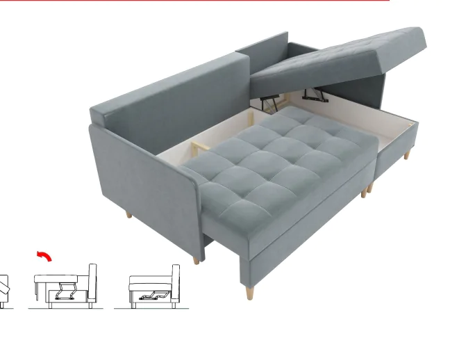 Nedidelis kampas – kompaktiškas, funkcionalus baldas mažesnėms erdvėms. Patogus sėdėti, turi miego funkciją ir  patalynės dėžę. Puikiai tinka svetainei, svečių kambariui ar jaunimo kambariui.